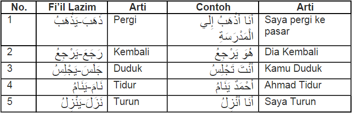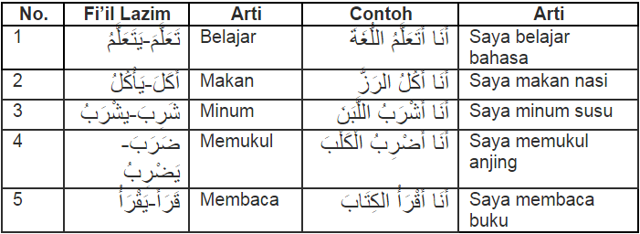 Berikut saya berikan beberapa contoh Fi'il Lazim:
