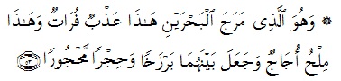 “Dan Dialah yang membiarkan dua laut yang mengalir (berdampingan); yang ini tawar lagi segar dan yang lain asin lagi pahit; dan Dia jadikan antara keduanya dinding dan batas yang menghalangi.” (Q.S. Al-Furqaan:53)
