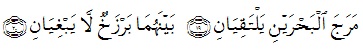“Dia membiarkan dua lautan mengalir yang keduanya kemudian bertemu. Antara keduanya ada batas yang tidak dilampaui masing-masing.” (Q.S. Ar-Rahman:19-20)