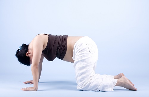 Senam ibu hamil memiringkan panggul dapat meningkatkan kekuatan otot perut dan meredakan sakit pinggang terutama trimester ketiga. Posisi merangkak dengan kepala sejajar punggung. Tengadah ke atas sambil menarik nafas melepas nafas. Lakukan dengan santai. Berlatihlah rutin beberapa kali sehari.