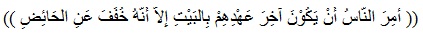 “Diperintahkan kepada jamaah haji saat-saat terakhir bagi mereka berada di baitullah (melakukan thawaf wada’), hanya saja hal ini tidak dibebankan kepada wanita yang sedang haid.” (Hadits muttafaq alaih).