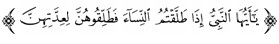 “Hai Nabi, apabila kamu menceraikan istri-istrimu maka hendaklah kamu ceraikan mereka pada waktu mereka dapat (menghadapi) iddahnya ( yang wajar)". (QS. Ath Thalaq: 1).