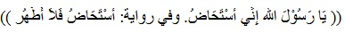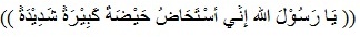 “Ya Rasulullah, sungguh aku sedang mengalami Istihadhah yang deras sekali” (HR. Ahmad, Abu Dawud, dan At Tirmidzi dengan menyatakan shahih, disebutkan pula bahwa hadits ini menurut Imam Ahmad shahih, sedang menurut Al Bukhari hasan.