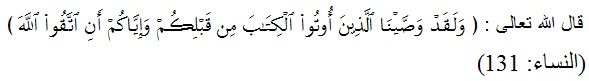 “..dan sungguh Kami telah memerintahkan kepada orang-orang yang diberi kitab sebelum kamu dan (juga) kepada kamu; bertakwalah kepada Allah”. (QS. Al-Nisa’: 131 )
