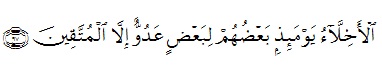 Teman-teman akrab pada hari itu sebagiannya menjadi musuh bagi sebagian yang lain kecuali orang-orang yang bertakwa. (QS. Al-Zukhruf: 67.)