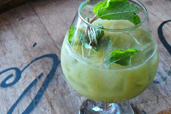 Cara membuat : Masukkan kiwi, sirup melon, es batu ke dalam tabung blender lalu proses hingga halus. Tuang ke dalam gelas, tambahkan soda manis.