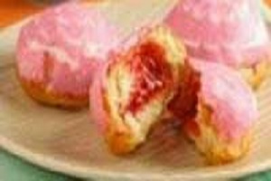 Donat pada umumnya berbentuk seperti cincin dengan lubang ditengahnya, namun taukah anda donat juga ada yang berbentuk bundar tanpa ada lubang biasanya donat ini biasanya memiliki isian seperti coklat, keju selai, jelly, atau krim. Donat yang dibuat menggunakan isian selai stroberi sepertinya menu yang cocok untuk dihidangkan sebagai camilan santai bersama keluarga tercinta dirumah. Selai Stroberi biasanya dibuat dari buah stroberi yang digiling halus atau dihancurkan lalu ditambah gula kemudian dipanaskan hingga teksturnya padat dan kental. Namun karena jaman yang semakin modern selai ini juga banyak dijajakan pada pasar atau supermarket terdekat, dengan mengkonsumsi selai ini sama dengan mengkonsumsi buah stroberi. Buah Stroberi bermanfaat menjaga kesehatan pencernaan, baik untuk kesehatan jantung, sebagai Anti- kanker, dapat mempertajam daya ingat serta kesehatan mental, menjaga kesehatan tulang dan sebagainya.