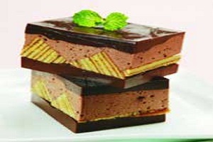 Tuang di atas lapisan bolu. Simpan dalam lemari pendingin sampai membeku. Angkat. Hidangkan dingin.