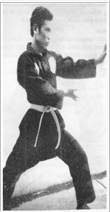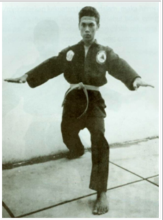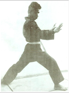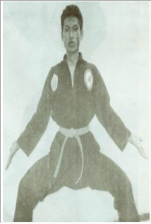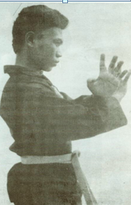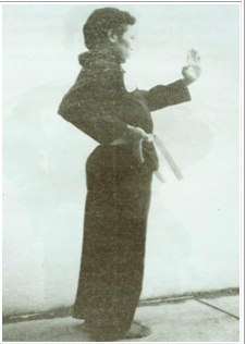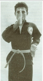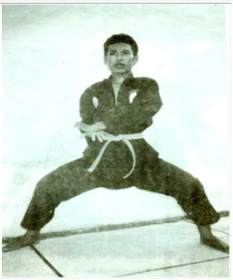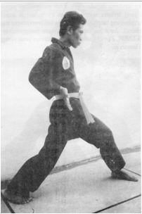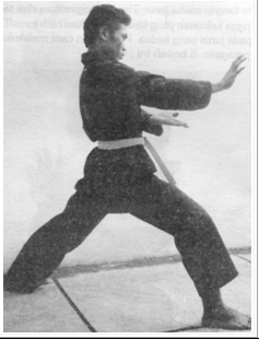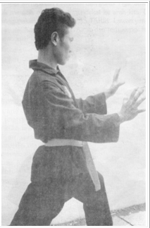 Langkahkan kaki kiri ke depan dan sibakkan kedua tangan anda ke samping. Gerakan itu harus anda lakukan bersama-sama dengan menghentakkan nafas dengan keras/kuat melalui hidung. Dan juga harus disertai dengan membayangkan/merasakan adanya aliran tenaga yang mengalir dan terpancar melalui "pedang" tangan ( = sisi telapak tangan ).