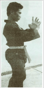 Geser kaki kiri anda dan dorongkan telapak tangan anda ke depan. Bersamaan dengan itu, hembuskan nafas anda dengan keras melalui hidung. Pada saat melakukan gerakan dan pernafasan tersebut, anda harus menggambarkan/merasakan seolah-olah tenaga dalam anda terpancar melalui telapak tangan kiri.