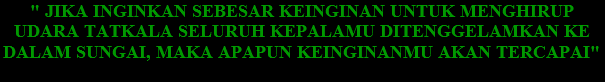 Anda, apabila kelak telah menjadi seorang Pendekar Ilmu Tenaga Dalam, berusahalah untuk sentiasa meningkatkan kualiti keperibadian. Jangan kerana menguasai ilmu tenaga dalam lantas menyelesaikan semua persoalan/masalah dengan adu kekuatan. Peganglah ajaran ini : "MAAFKANLAH SESAMAMU : DIRIMU, TEMANMU DAN ......MUSUHMU."