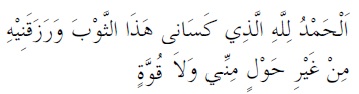 “Segala puji bagi Allah yang telah menutupi aku dengan pakaian ini dan mengaruniakannya kepadaku tanpa daya dan kekuatan dariku.” (HR. Abu Daud dan dinilai hasan oleh Al-Albani).