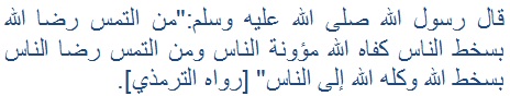 "Barangsiapa yang mencari ridho Allah dengan kemarahan manusia maka Allah akan mencukupkan dirinya dari manusia, dan barangsiapa yang mencari ridho manusia dengan kemurkaan Allah maka Allah akan serahkan urusanya pada manusia". HR Tirmidzi.