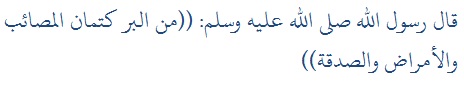 Termasuk dari wejangan Nabi Shalallahu 'alaihi wa sallam kepada umatnya dalam masalah ini yaitu menyembunyikan musibah yang sedang di alaminya, hal itu sebagaimana yang tercantum dalam sebuah hadits, di mana Nabi Shalallahu 'alaihi wa sallam bersabda:
