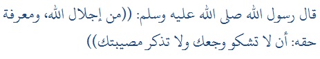 "Termasuk dari bagian memuliakan Allah Ta'ala dan mengetahui hakNya adalah tidak mengeluh pada setiap penyakit yang (menimpamu) dan tidak menyebut-nyebut musibahmu".