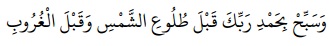 “…dan bertasbihlah sambil memuji Tuhanmu sebelum terbit matahari dan sebelum terbenam (nya)”. (QS. Qaf: 3911)