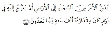 “Dia mengatur urusan dari langit ke bumi, kemudian (urusan) itu naik kepada-Nya dalam satu hari yang kadarnya (lamanya) adalah seribu tahun menurut perhitunganmu.” (QS As Sajdah:5)