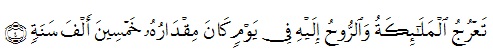 "Malaikat-malaikat dan Jibril naik (menghadap) kepada Tuhan dalam sehari yang kadarnya limapuluh ribu tahun." (Al Qur'an, Al-Ma'arij:4)