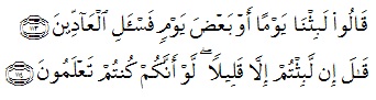 "Allah bertanya: 'Berapa tahunkah lamanya kamu tinggal di bumi?' Mereka menjawab: 'Kami tinggal (di bumi) sehari atau setengah hari, maka tanyakanlah kepada orang-orang yang menghitung.' Allah berfirman: 'Kamu tidak tinggal (di bumi) melainkan sebentar saja, kalau kamu sesungguhnya mengetahui'." (Al Qur'an, 23:122-124)